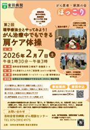 がん治療中や治療後の方に多く見られる「肩こり」や「肩の動かしづらさ」は、生活の質(QOL)に大きく影響します。今回、がんリハビリテーションの一環として、椅子に座ったままできる、やさしく、安全な肩ケア体操を行います。初めての方、治療中の方や治療後の方にも安心して参加いただける内容です。