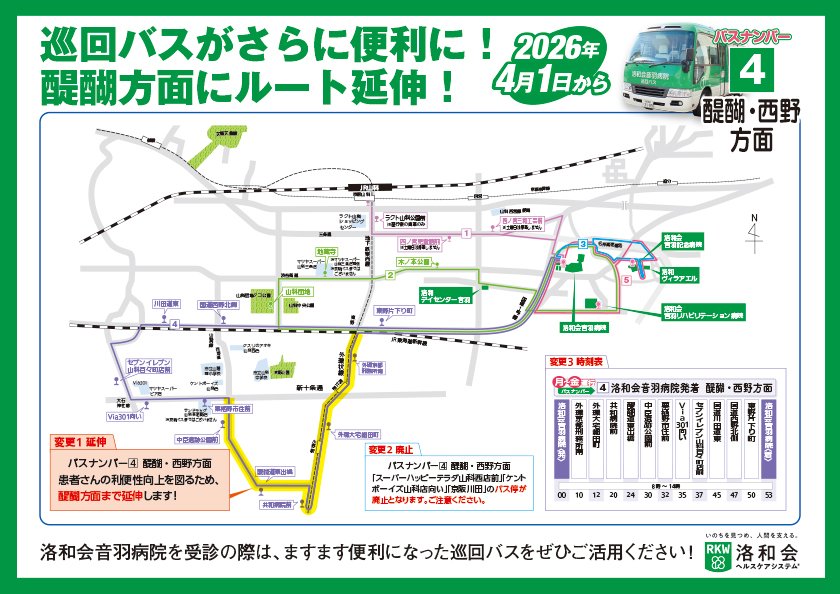 バスNo.4(西野・栗栖野・川田方面)のルートとダイヤが変更になります
